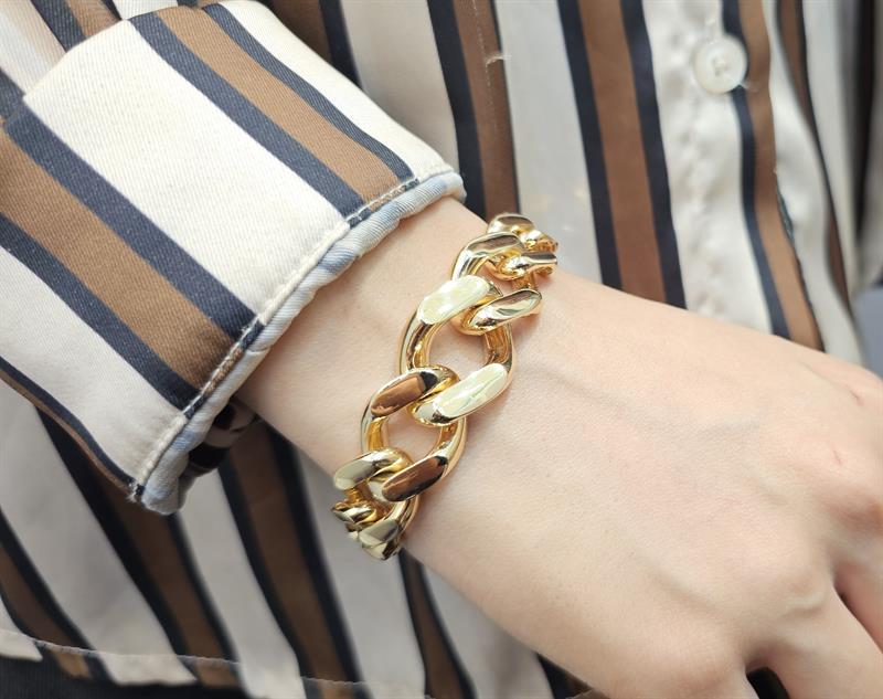 دستبند زنانه کارتیر (کارتیه) نمادار با طراحی و آبکاری چشمگیر و وزنی حدود 18.7 گرم در گالری طلای اطلس. برای مشاهده محصولات مشابه به وبسایت طلافروشی اطلس مراجعه فرمایید.